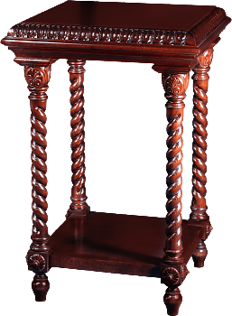 • Стол выполнен из дерева с элементами резьбы. Являясь незаменимым элементом храмовой мебели, может быть использован в качестве стола кануна (панихидного столика), а также как литийный, алтарный и стол для мощевика. Как правило изделие выполнено в едином стиле с остальным убранством храма: иконостасом, подвесными и напольными киотами, аналоями, мощевиками, церковными сенями, скамьями.