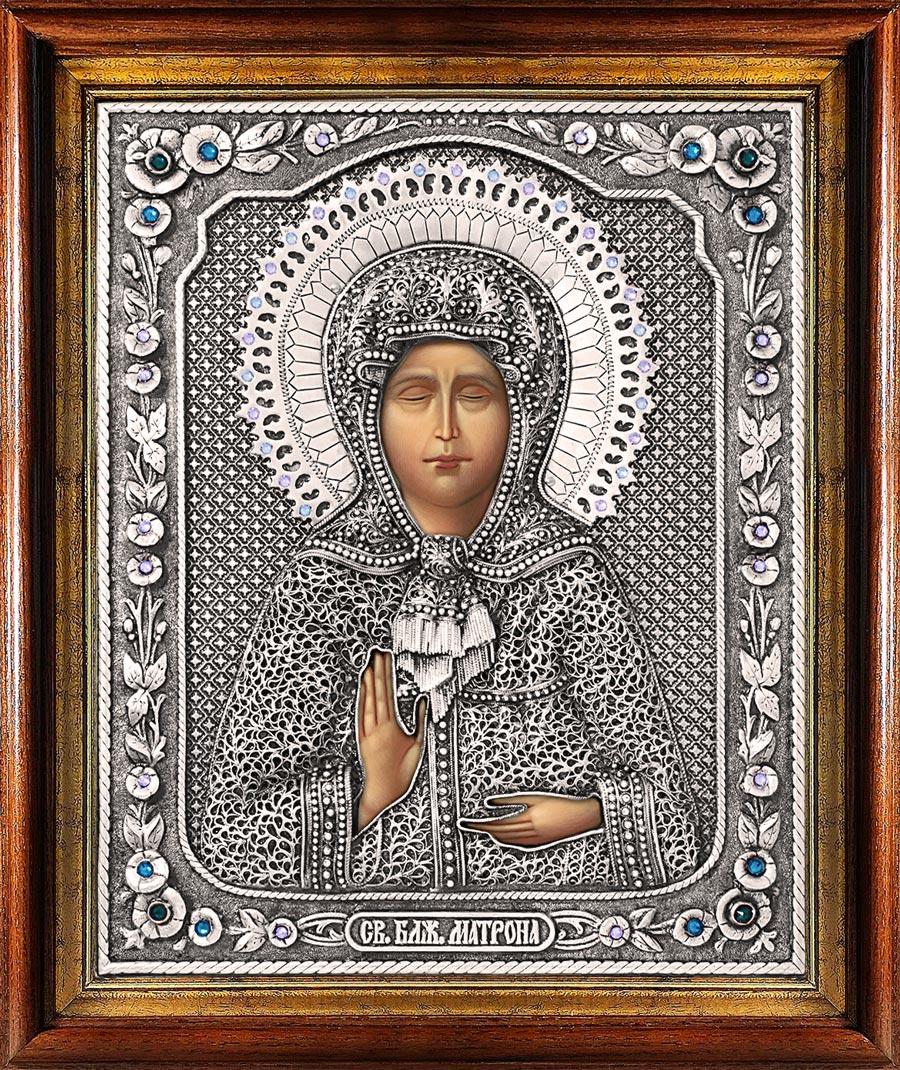 • Образ святой блаженной Матроны Московской выполнен в традициях иконописи мастеров XIX века методом УФ печати. Краски отличаются высокой износостойкостью, влагостойкостью, атмосферостойкостью, а следовательно — долговечностью.