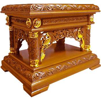 Являясь незаменимыми элементами храмовой мебели, товары церковной утвари выполнены в едином стиле и гармонии с иконостасом, облачением на престол, подвесными и напольными киотами, троном при оформлении Горнего места, сенями и другой мебелью, представленной на нашем сайте церковной утвари.