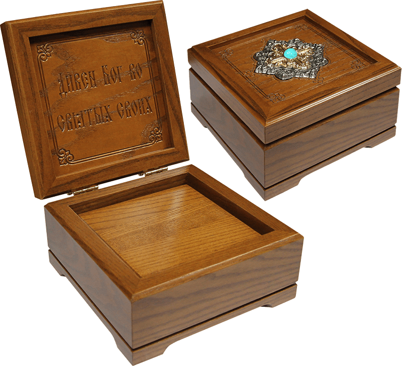 • Крышка украшена резьбой, серебрением, золочением, натуральными камнями.