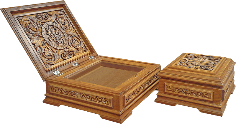 • Крышка украшена резьбой с внутренней и внешней стороны.