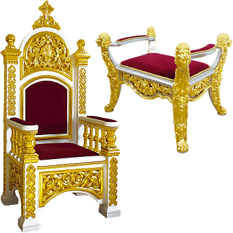 Заказать резные троны и седалища на кафедру: резные, с полным и частичным золочением, белые с золочением, - по стандартным и индивидуальным размерам из массива ценных пород дерева. По цене производителя - СТБ Щигры. Доставка во все регионы России