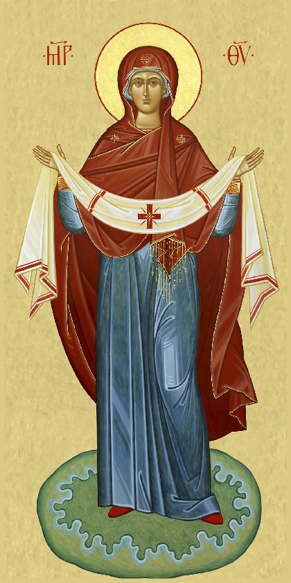 Икона Божией Матери "Покров Пресвятой Богородицы", красная эмаль