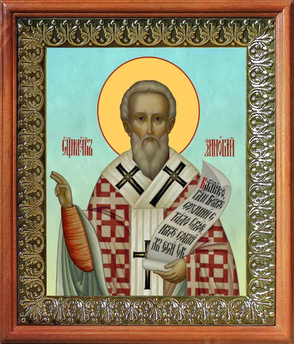 Икона святого Зиновия священномученика и епископа Эгейского в деревянной рамке, инкрустированной басмой | 42003-8 (09З1)