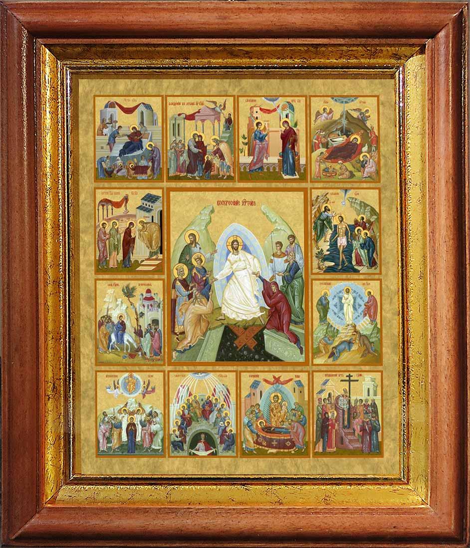Икона "Двунадесятых праздников" на холсте в киоте с рамкой багет | 40200-5 (05Д1)