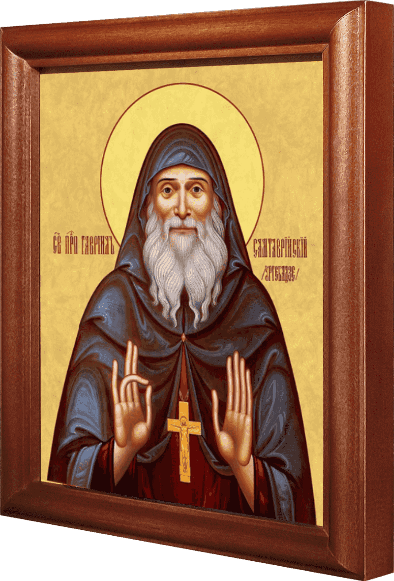 Печать иконы святого Гавриила Самтаврийского (Ургебадзе) преподобного архимандрита осуществляется на художественном высококачественном холсте, стойким к изменениям влажности и температурным колебаниям.