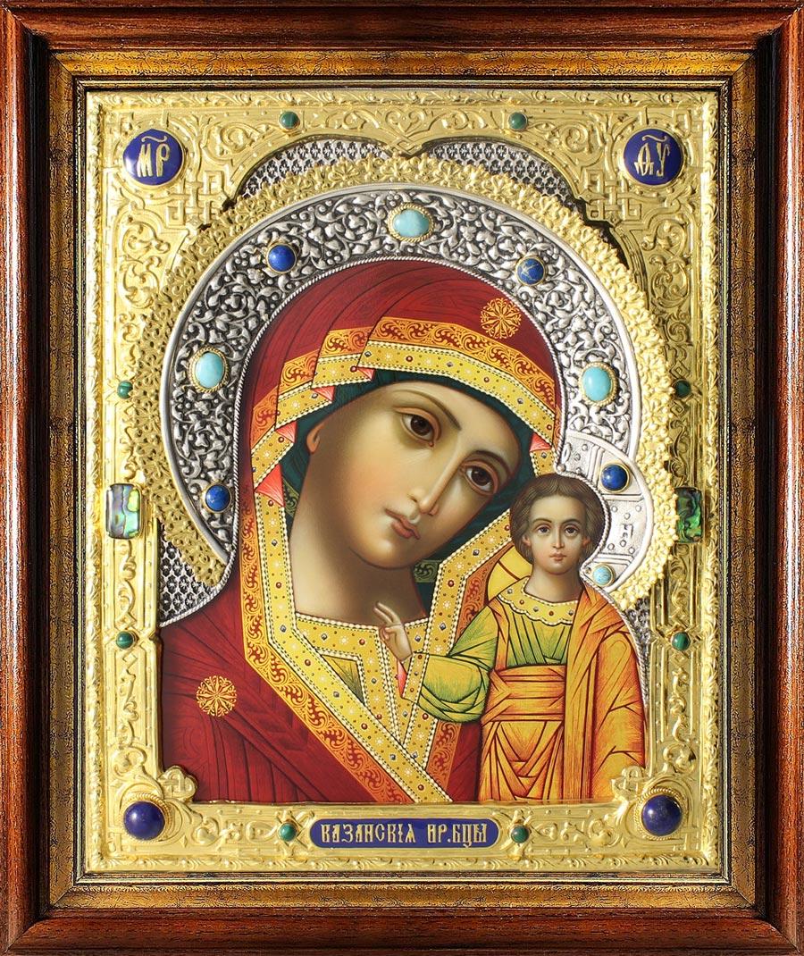 Икона Божией Матери "Казанская" в посеребренной ризе (окладе), Р-140