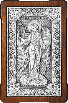 Посеребренная икона святого Ангела Хранителя изготовлена методом гальванопластики Cu9990 — 0,5 мм, с последующей ручной обработкой и серебрением Ag9990 — 10 мкм, покрыты антикоррозийным лаком.