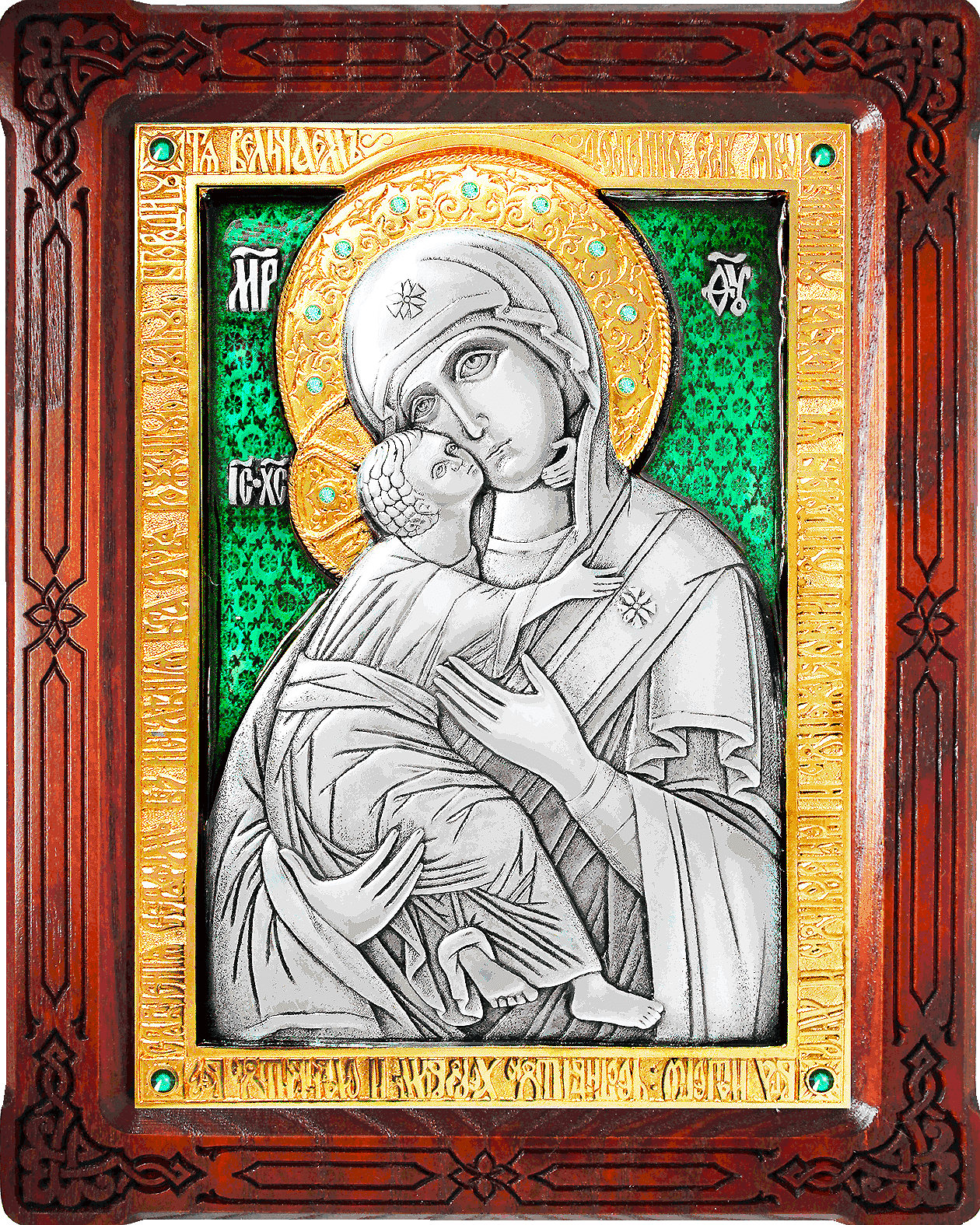 Икона Божией Матери "Владимирская", зеленая эмаль