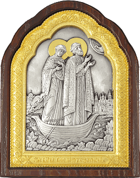 Посеребренная икона св. блгв. кн. Александра Невского изготовлена методом гальванопластики Cu9990 — 0,5 мм, с последующей ручной обработкой и серебрением Ag9990 — 10 мкм, покрыта антикоррозийным лаком.